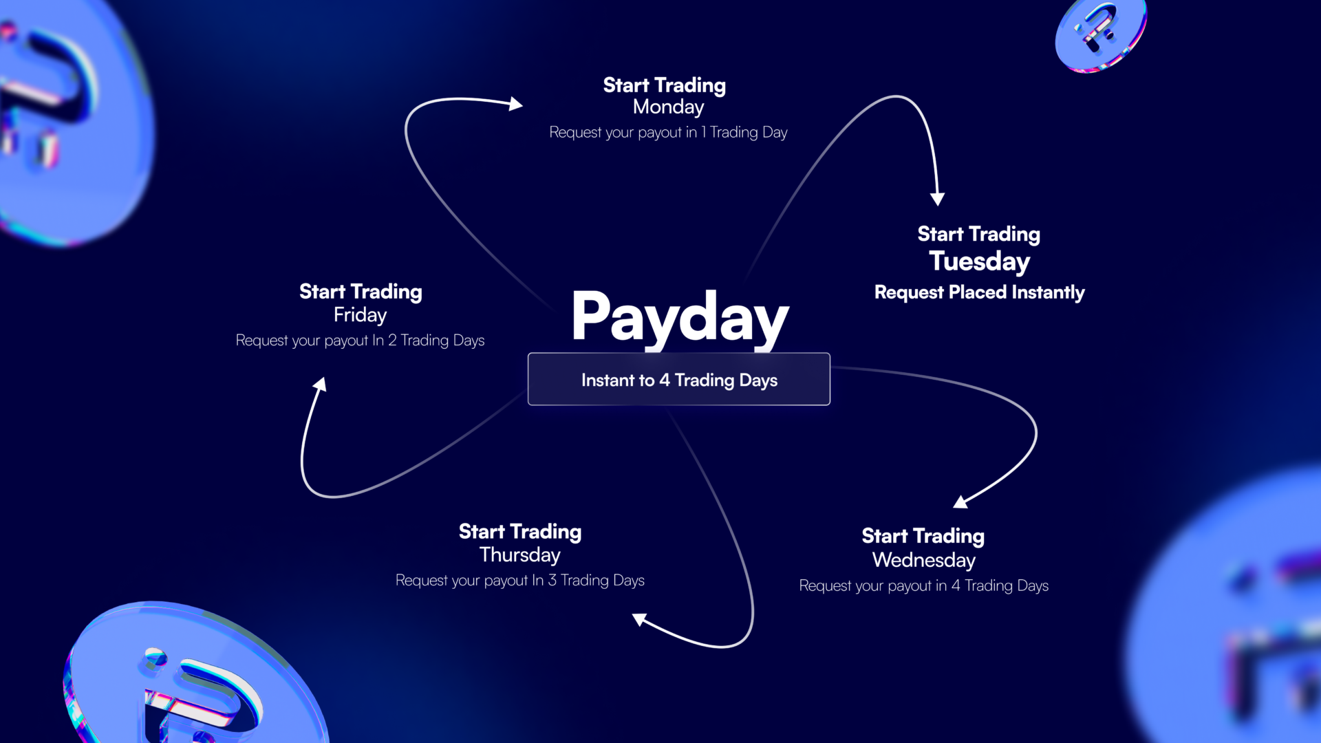 FUNDEDBTC has transformed the trading industry by introducing a revised payout system, departing from the traditional bi-weekly cycle and instituting a fixed payday every Tuesday. This innovative approach enables traders to commence trading on their master account on Tuesday and request their payout on the same day, effectively providing an instantaneous payout mechanism. Exclusively with Funding Pips, traders have the ability to request their payout within 4 days, contingent upon the commencement of their master account, with a profit split of 80%.
